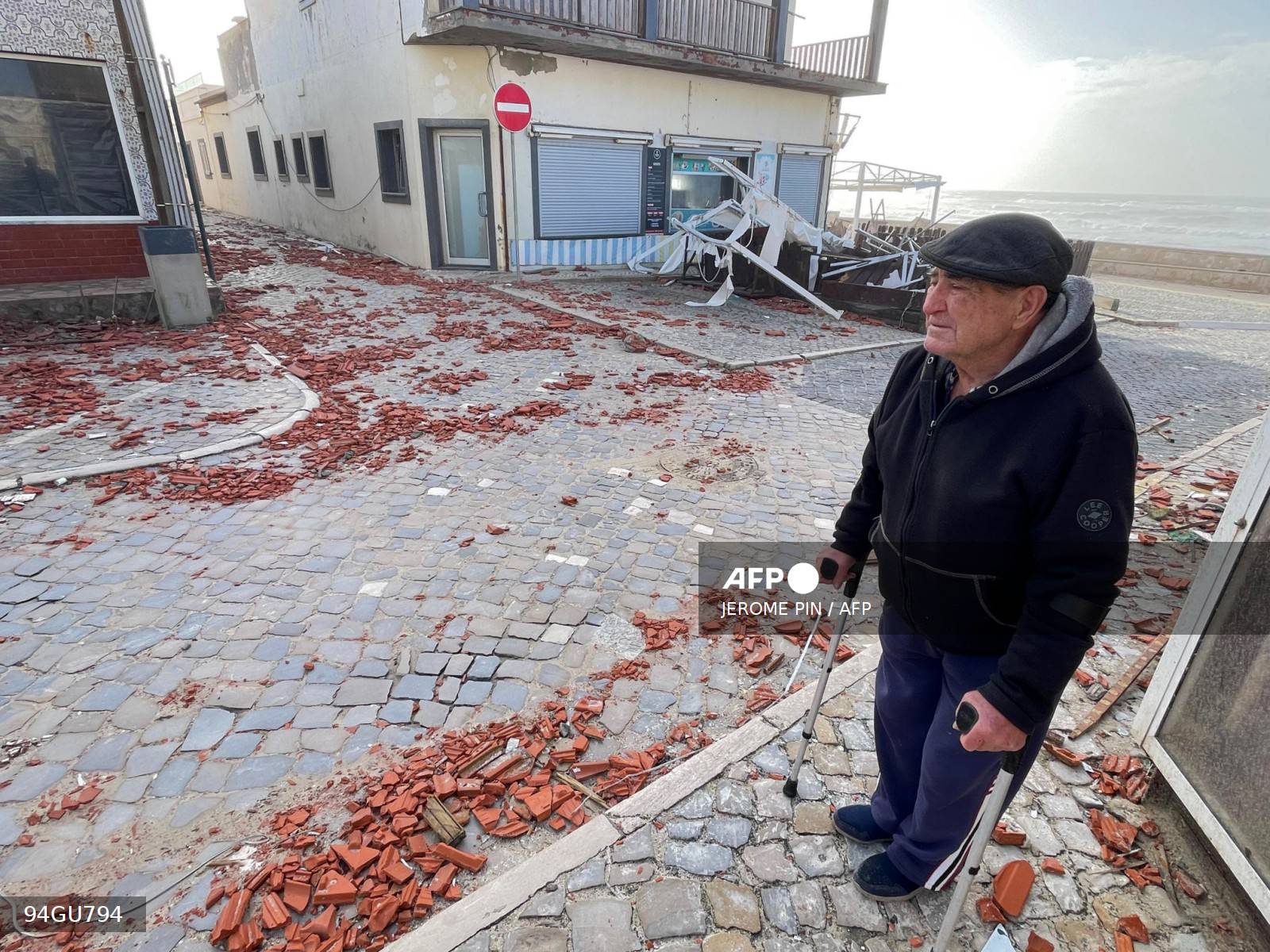 A man walks past debris in a street after storm Kristin hit Portugal. PHOTOS: Jerome PIN / AFP