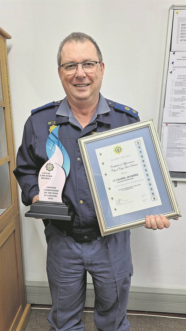 Skaars ’n jaar nadat hy as stasiebevelvoerder van die Bellville-Suid-polisiekantoor aangestel is, is lt.kol. Johannes Erwee op Vrydag 13 September deur die Stad Kaapstad-distrik as Stasiebevelvoerder van die Jaar aangewys.