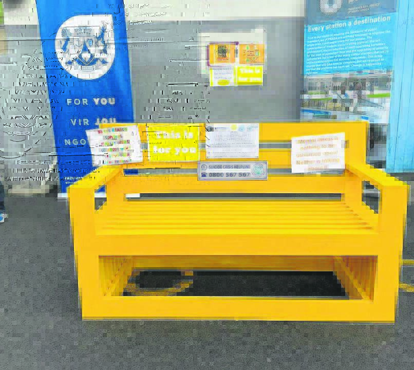The bright yellow benches were carefully placed and create a warm, open and welcoming place to relax and connect with others, to spend a moment and by using the information provided on the plaques, connect all individuals with those who are trained to help.