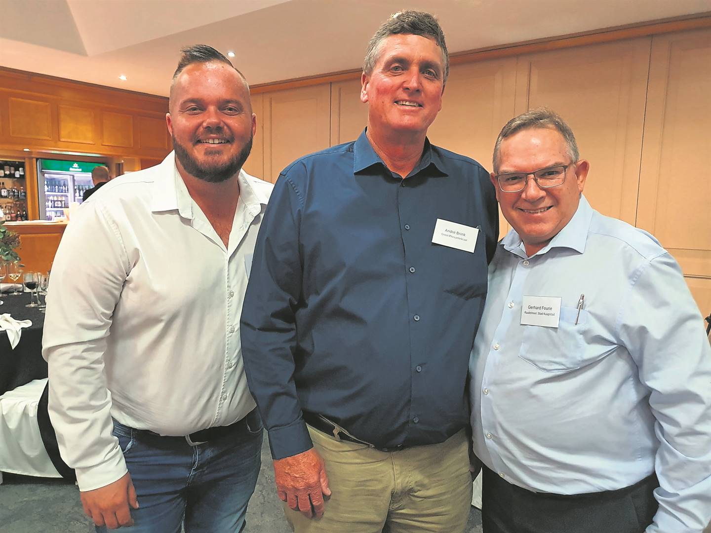 André Brink (middel) van Groot Phesantekraal is saam met Francois Berry (links), raadslid vir Wyk 105, en Gerhard Fourie, voorsitter van die Subraad 7. FOTO: Esmé Erasmus