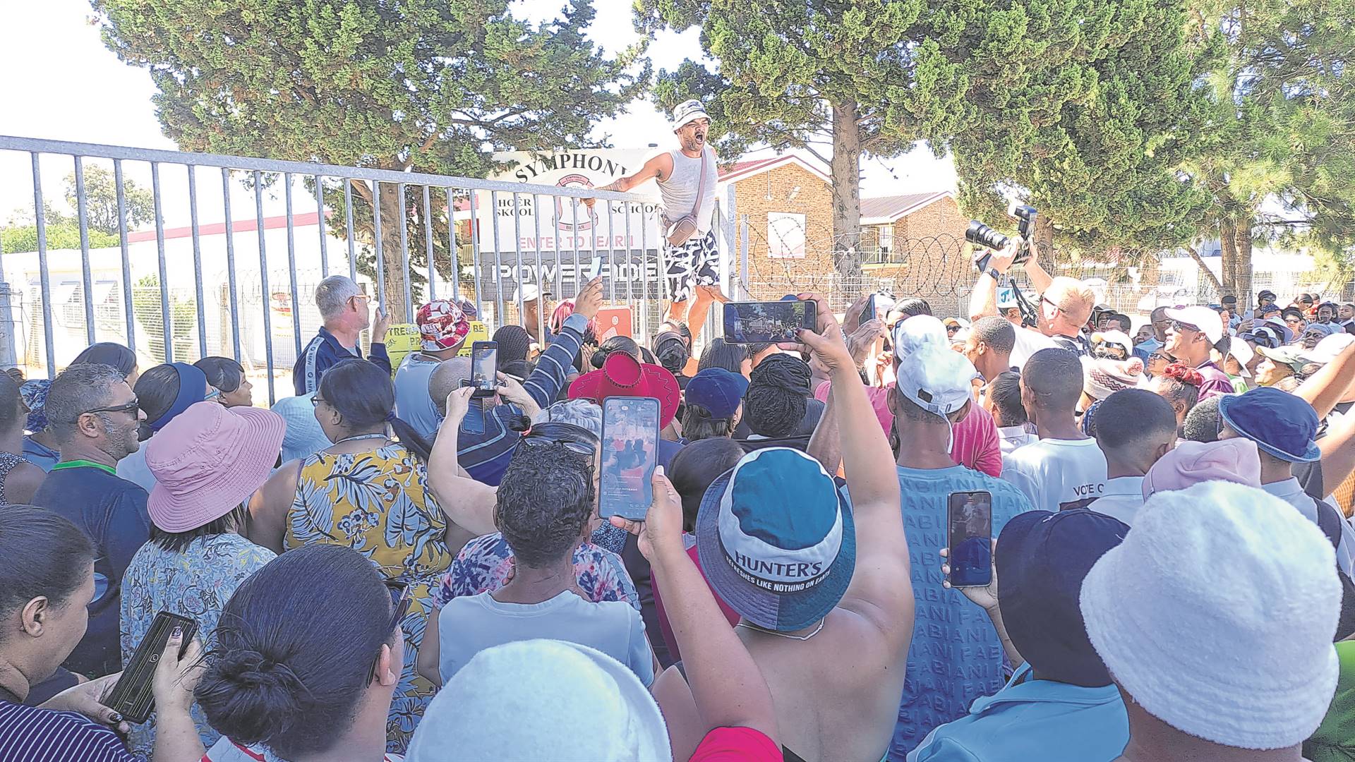 The crowd demanded the principal and alleged perpetrator collect the document and address them, however they were not on the school premises that day.