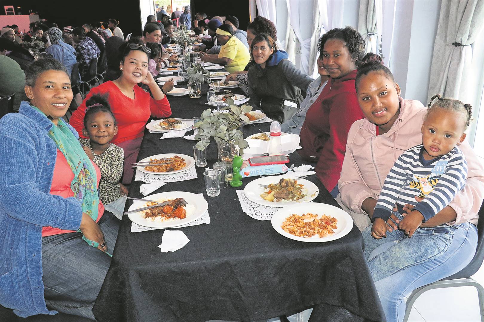 Sowat 220 gaste, hoofsaaklik plaaswerkers en hul gesinne, asook ’n paar haweloses uit die gemeenskap, kon aan die langtafels aansit vir ’n heerlike driegangete.