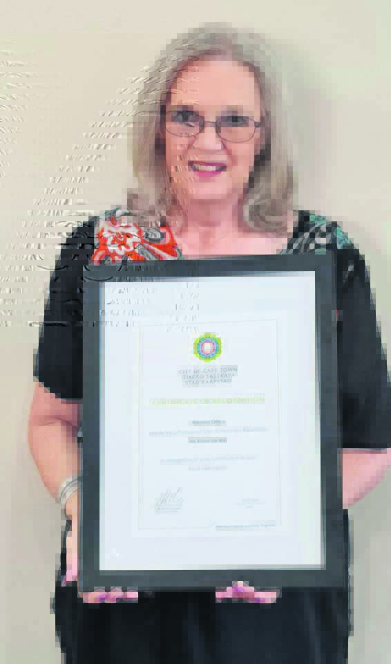 Riana de Wet, ’n voormalige lid van die Monte Vista- en Plattekloof Glen-belastingbetalersvereniging, is met dié toekenning vereer – iets waaroor sy geëerd voel.