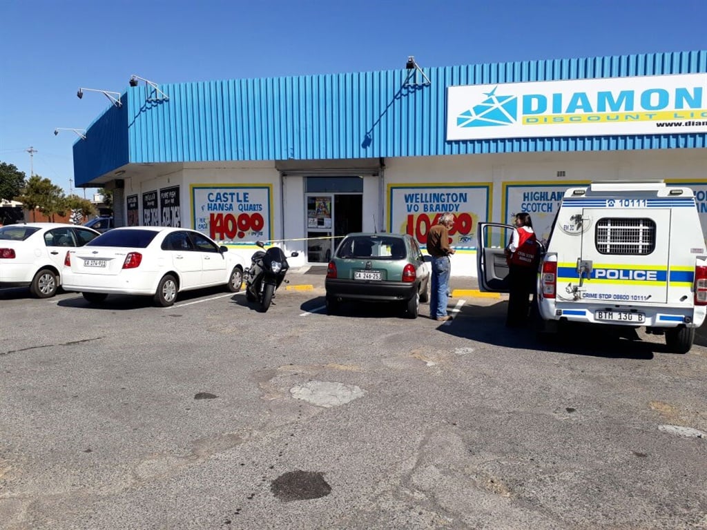 According to a police report, shortly before 15:00 two armed men entered a superette in Koeberg Road while three other accomplices stood guard outside.