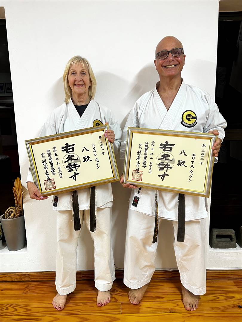 Within Okinawa Goju Ryu Karate-do Kyokai (OGKK) this promotion places Lilian (66) as the highest ranking female in the world and Elias, who is on the brink of 70, as the highest ranking male in Africa. He is one of only four male Westerners to have reached 8th Dan in this style of karate.