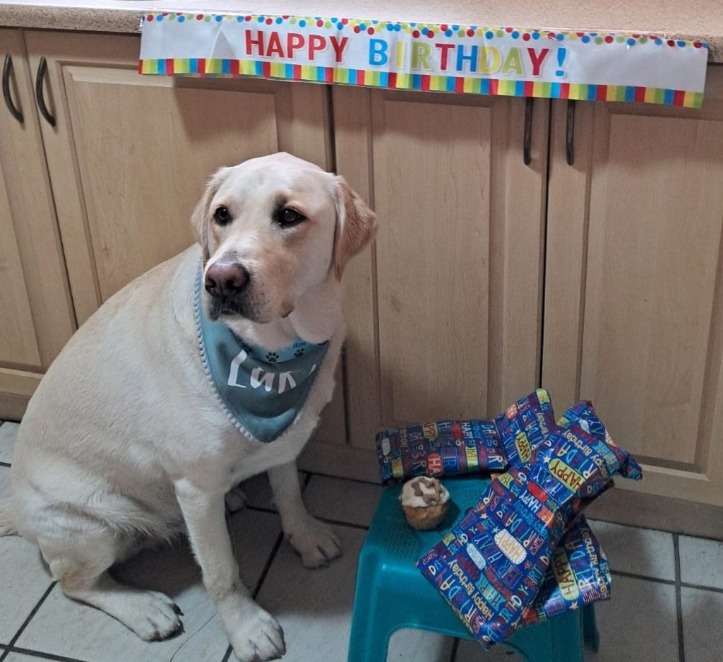 Sy naam is Luka, die kostelike goue labrador met die mooi geaardheid en groot bruin oë.