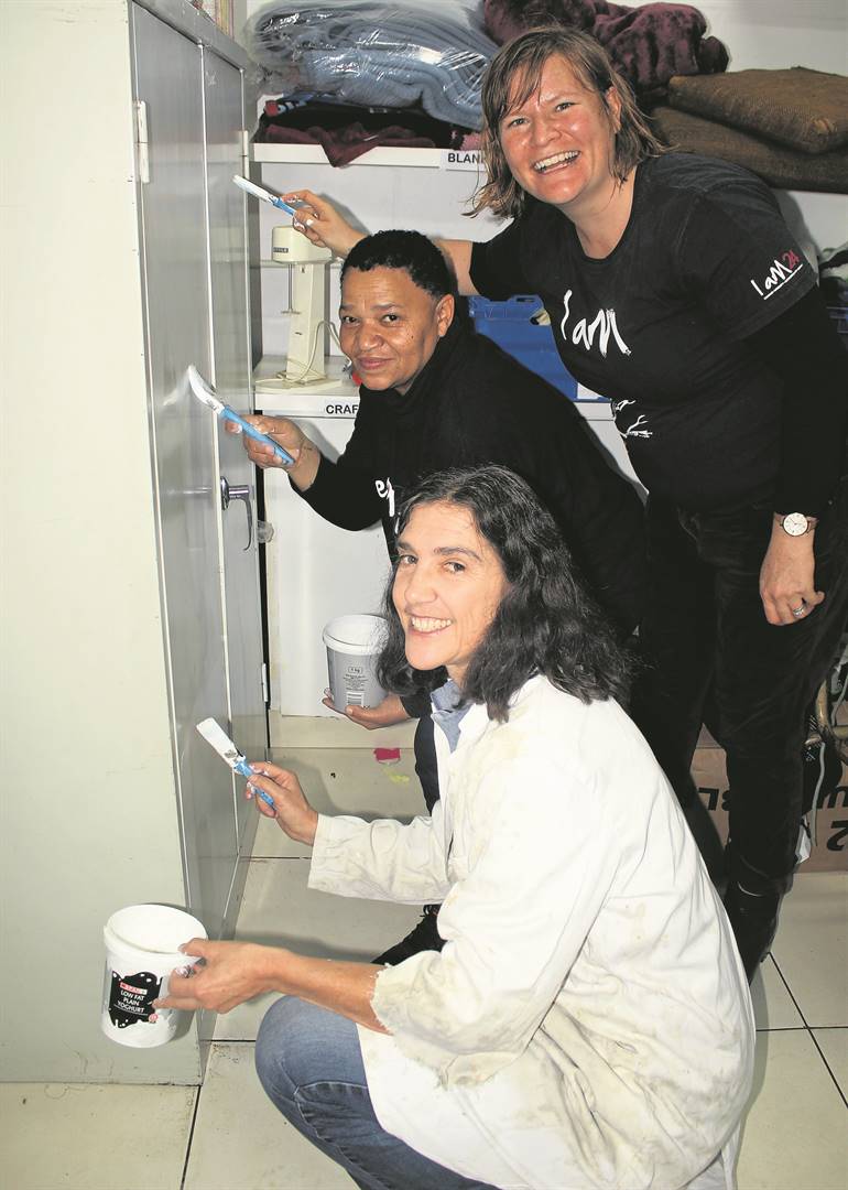 Hulle het staalkabinette geverf, danksy ’n skenking van verf deur Spiro’s Mega Mica in Durbanville. Verf is ook geskenk vir die verf van deure en binnemure.