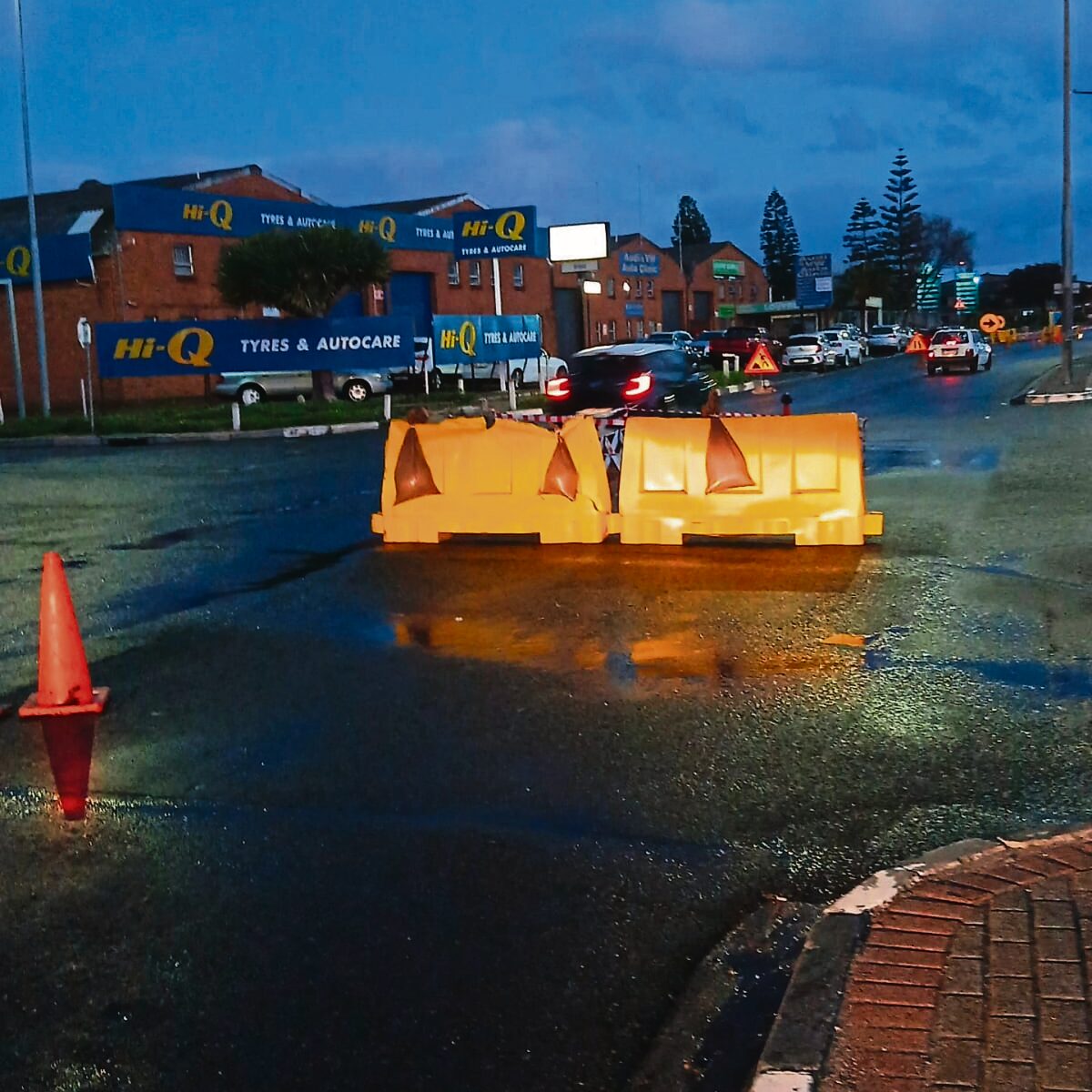 Barriers block off the hazardous section of Montague Drive following the latest sewer infrastructure failure.