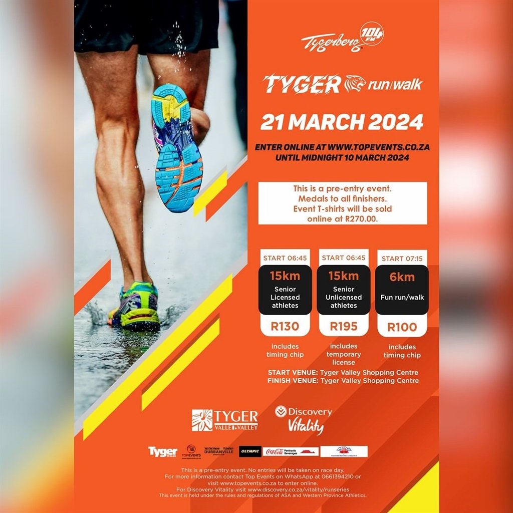 As jy een van die gelukkige 8 000 atlete is wat ’n inskrywing vir vanjaar se Radio Tygerberg 104FM se TygerRun/Walk kon kry, kan jy uitsien na ’n wonderlike oggend van hardloop en stap op Saterdag 21 Maart.
