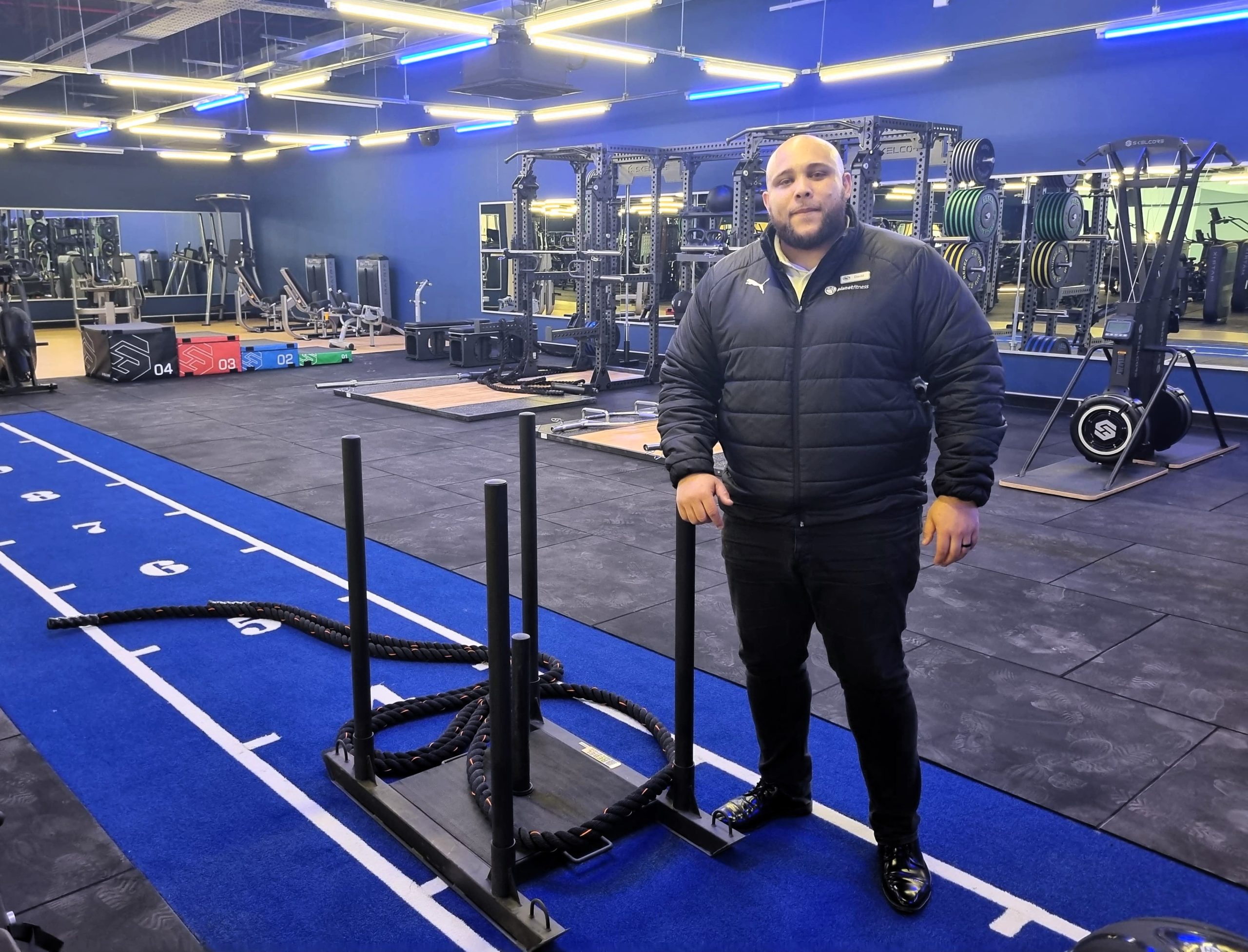 Shaaheen van der Fort of Planet Fitness Phesantekraal shows off the pilates reformer planet.