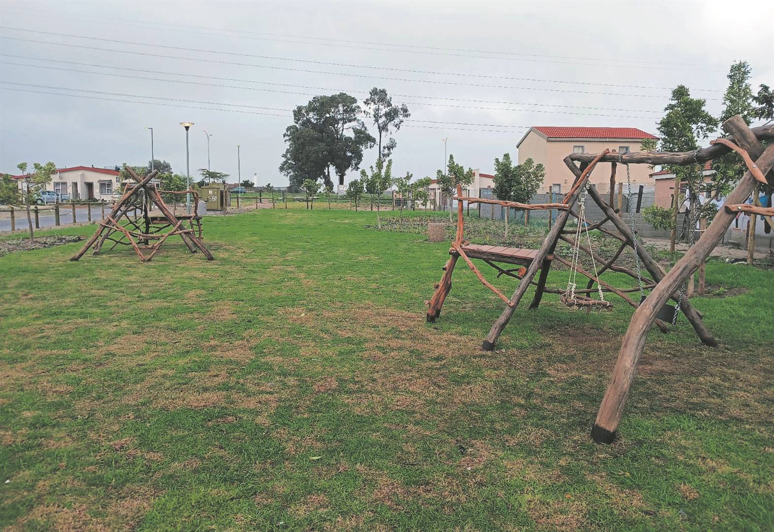 “Daar is vier oop gedeeltes wat nou ontwikkel is met grasperke, bome, verskeie plante en sitbankies. Die speel-apparate is op die grootste gedeelte opgerig. Daar is 120 bome geplant en 4 000 m² se gras geplant.”