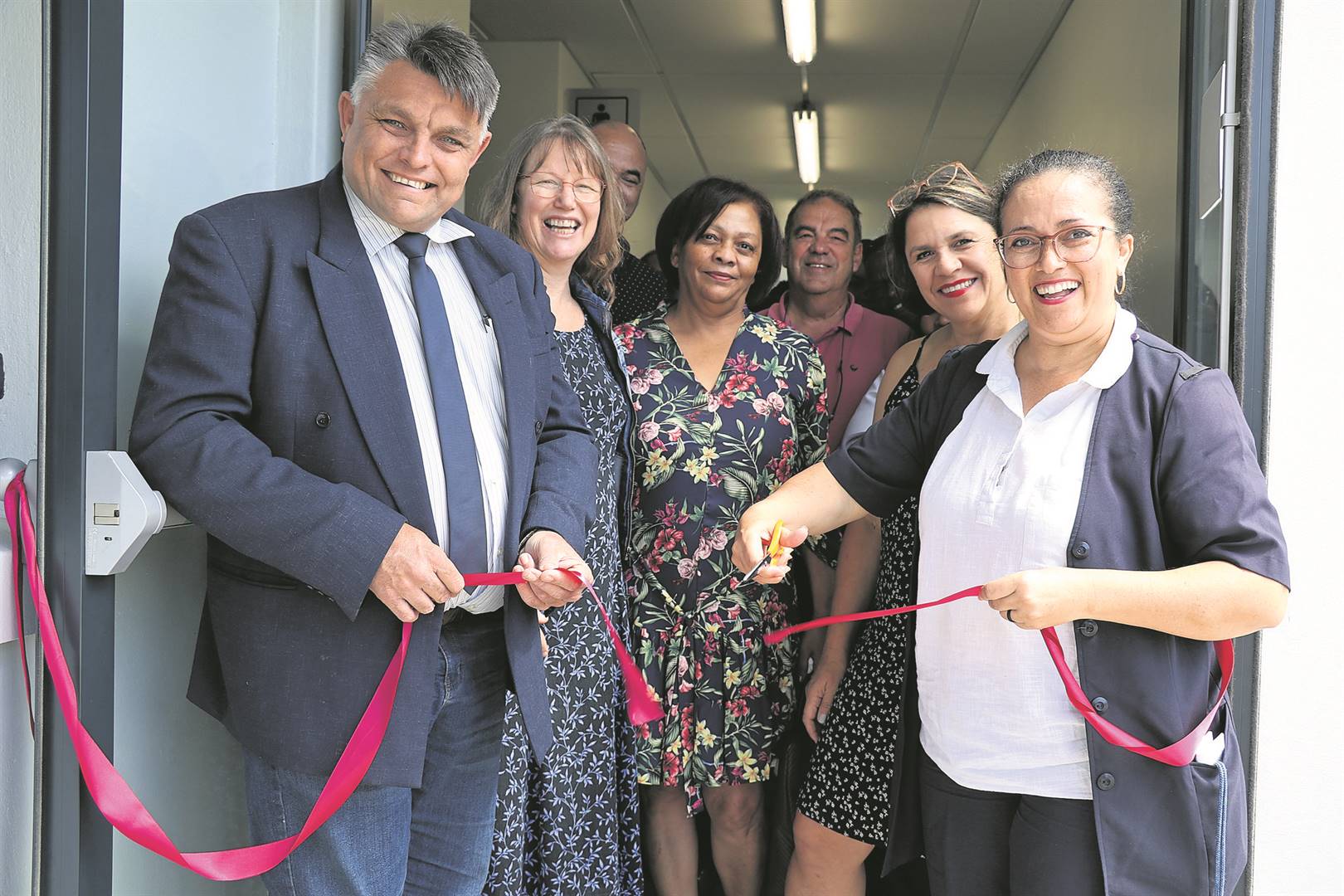 Prof. Vera Scott, gebiedsbestuurder van die Stad se gesondheidsdiens, het Leonore Fortuin-Johnson, kliniekbestuurder, en haar personeel geprys omdat dienslewering tydens konstruksie voortgegaan het – al moes hulle ’n geruime tyd van die saal langsaan gebruik maak.