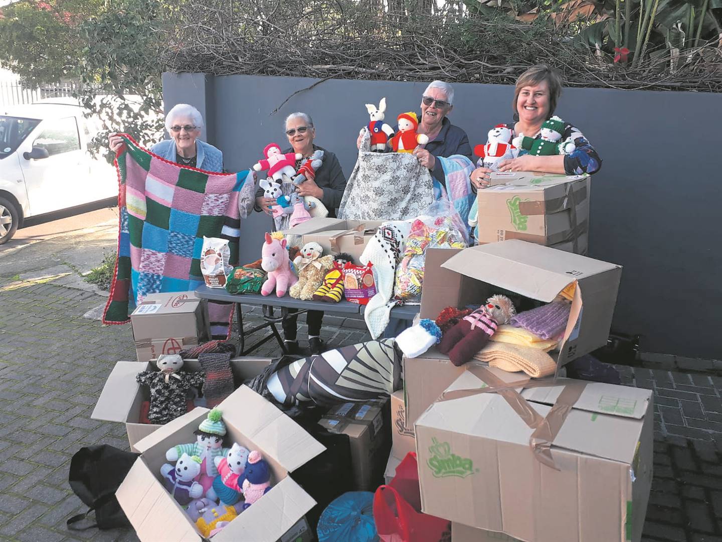 “Ná die opheffing van die Covid-19-regulasies het ek nege van die inwoners in die aftreeoorde gevra om te help om die sagte speelgoed te brei,” sê Linda Louw, wat die gemeenskapsprojek koördineer.