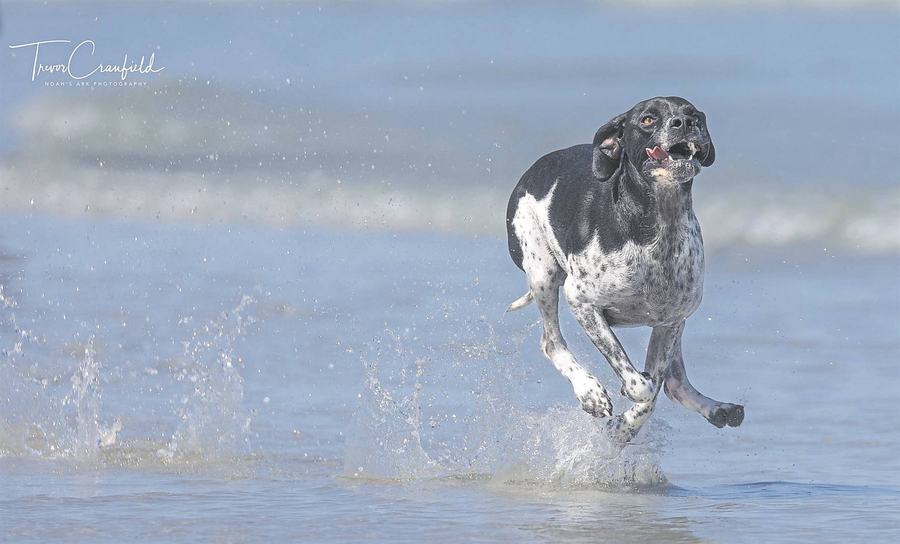 This English Pointer needs no ball. Racing up and down the Beach, barking in delight.PHOTO: Cheryl Lynn Cranfield