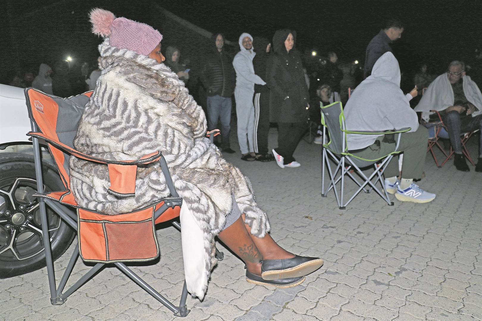 Kutala Mwanda (52) se dogter het in die ry gestaan terwyl sy kort voor 21:00 onder ’n kombers op haar kampstoel probeer warm bly het. Hulle het die oggend en die middag kom kyk hoe lyk die rye en het weer huis toe gegaan.