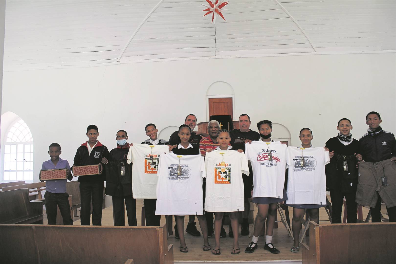 Die skenking het 20 paar skoene, hemde, broeke en warm baadjies en kontant ingesluit.