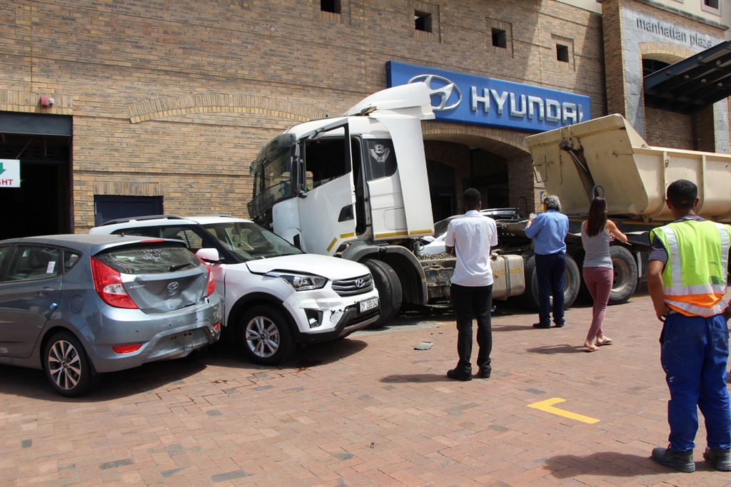 One witness who wished to remain anonymous said she was at her workplace when she saw the truck driving past the building into the vehicles parked outside Hyundai dealership.