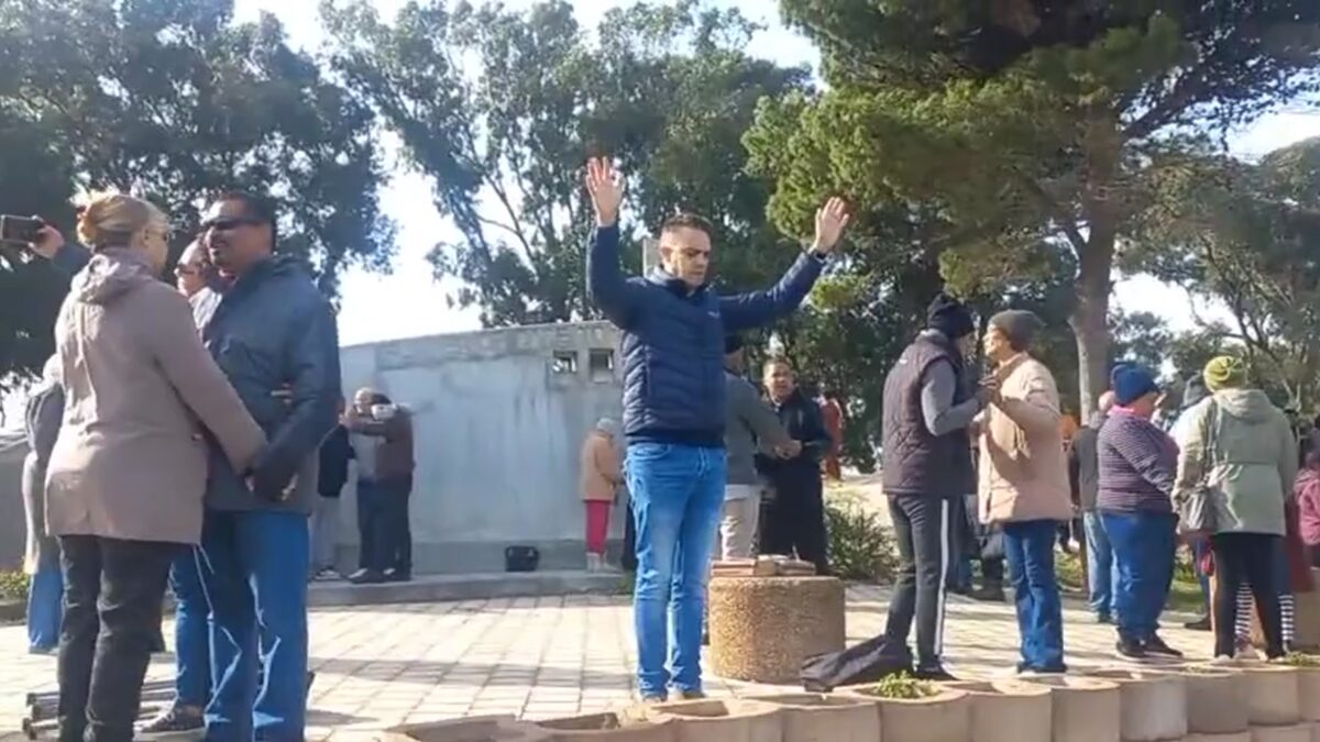 Van Rooy said the monument was chosen because it had been erected as a reminder of the last time the residents of the area had united in prayer, in 2018. At the time the city had been in the midst of a drought and had been days away from running out of water.
