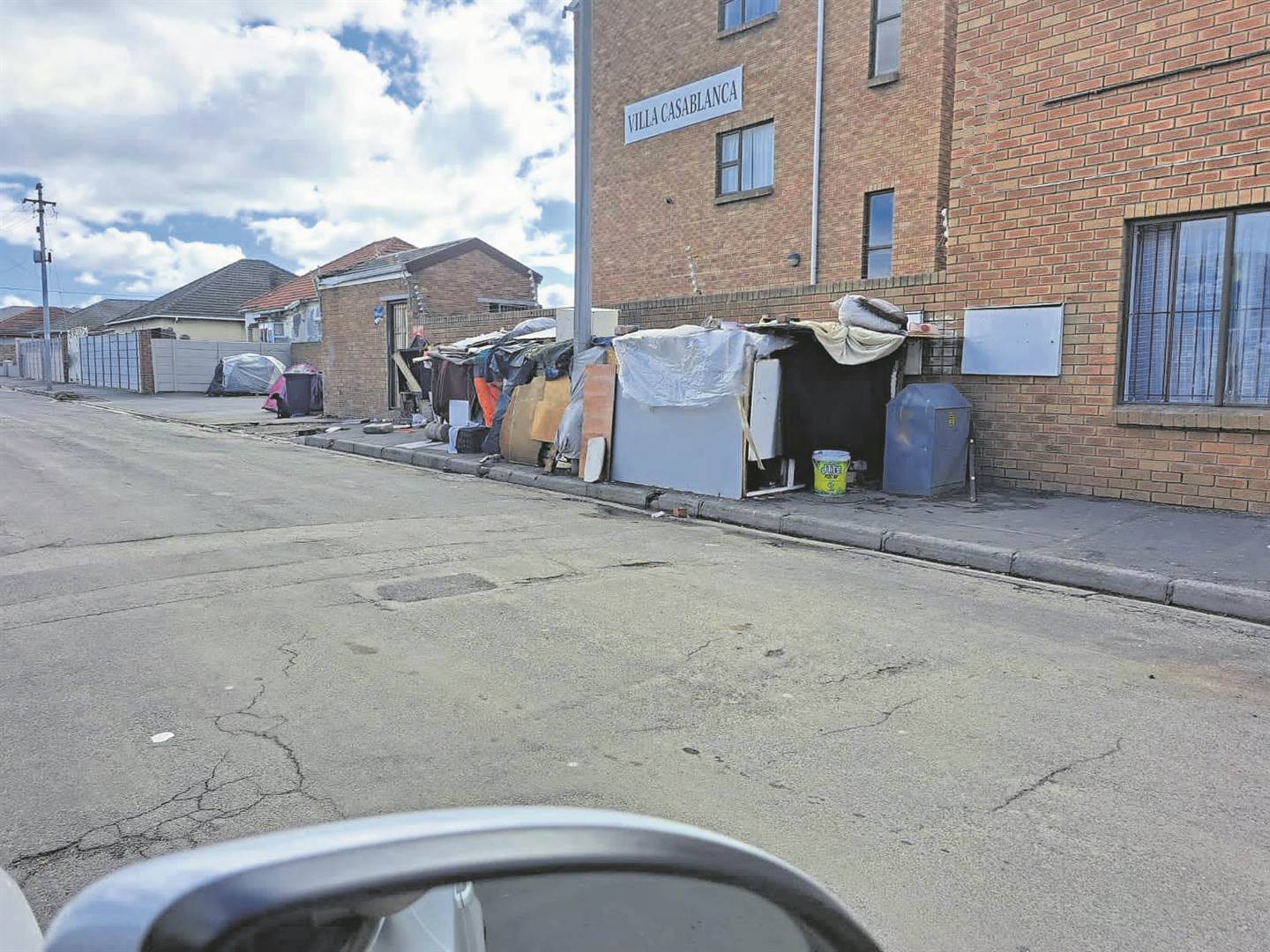 Hierdie inwoner vertel reg voor Villa Casablanca in Riebeekstraat is vier strukture gebou uit bord, karton en planke. Daar is ook drie tente opgerig en dit lyk naar.