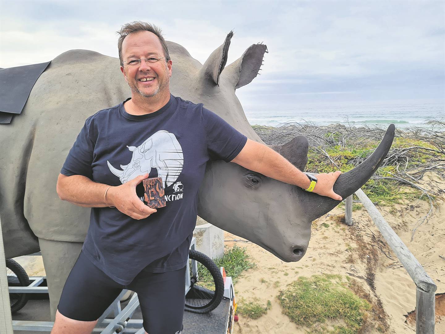 In another venture to draw the attention to remind humans not only to the plight of rhinos, but that there are so many other species at risk, Andrew Stewart an OLLIMove director, part of Algoa Bay Ocean Stewards and Chairman of Discover Mandela Bay (DMB), swam 6.55 kms around the Cape Recife Point with its legendary lighthouse to draw attention to the environmental significance of this area.