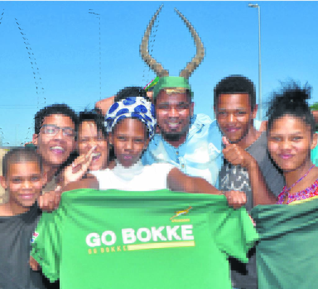 Getrou aan Rosedale se Bok-tradisie, het rugbyondersteuners by Four Ways saamgedrom om uiting aan hul vreugde oor die Springbokke se 19-16 sege oor Wallis te gee. Hierdie groep was deel van die baie Springbok-ondersteuners wat die strate na die senutergende Wêreldbeker semi-finaal ingevaar het. Saterdag om 11:00 pak die Springbokke vir Engeland in die finaal in Jokohama, Japan. Die wedstryd gaan ook op SABC2 uitgesaai word. Die wedstryd om die derde plek tussen die All Blacks en Wallis sal môre om 11:00, ook op SABC2 uitgesaai word. Foto: WESLEY KLUE