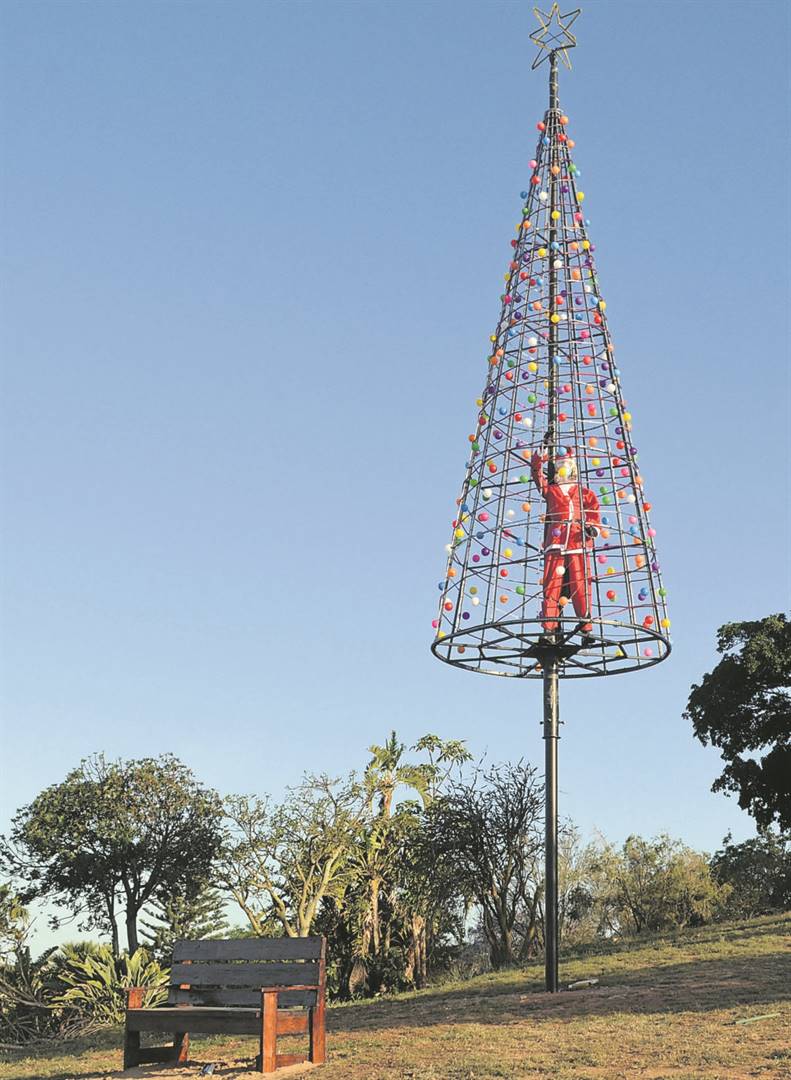 Nortier sê die stam van die Kersboom is gemaak van ’n ou straatligpaal. “Die paal is in ‘n ongeluk beskadig. Ons het die beskadigde deel afgesny en die res herwin vir die boomstam.”