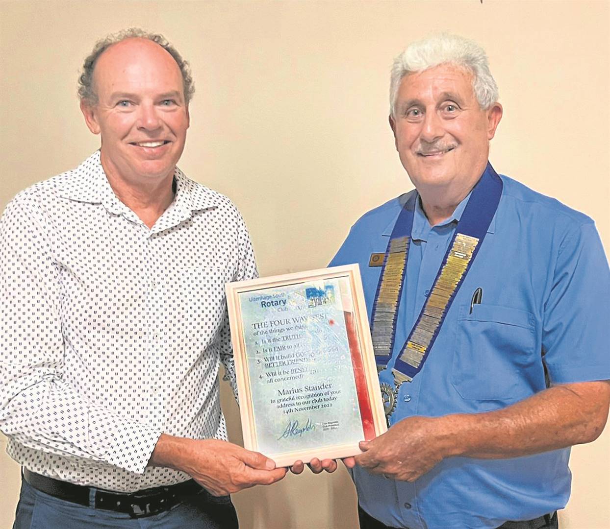 “Stander’s talk was a fascinating insight into the work of a State Advocate, highlighting how his niche market is solving cold cases, guiding police investigations to eventual prosecution,” said Alan Reynolds, president of The Rotary Club of Uitenhage South.