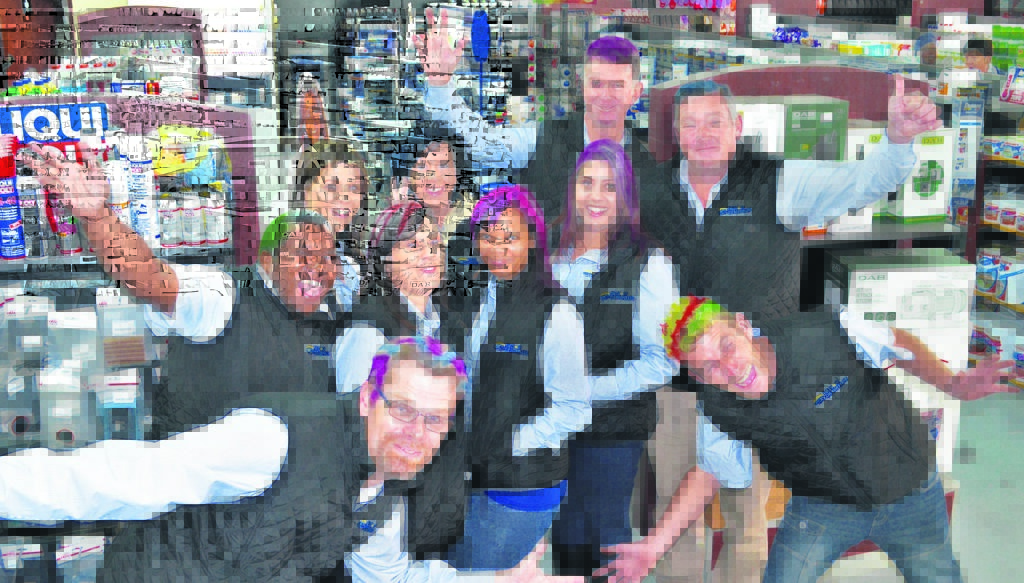 =Personeel van Die Koöperasie op Uitenhage het verlede Vrydag ’n haarspuit-uitdaging gehou om fondse in te samel vir die Kankervereniging van Suid-Afrika. Hier is (voor van links) Delano Swart en Morgan Mew. In die middel is Ruben Murphy, Renelda Kilian, Laetitia Mathebe en Marcel Smith. Agter staan Stefnie Pitout, Sanet van Tonder, Anton Kruger (assistent-takbestuurder) en Werner Gouws (takbestuurder). ’n Totaal van R16 488 is deur die Uitenhage-tak van Die Koöperasie ingesamel. Die publiek word bedank vir die ondersteuning van Die Koöperasie se Kansa-dag. Foto:HEILIE COMBRINCK