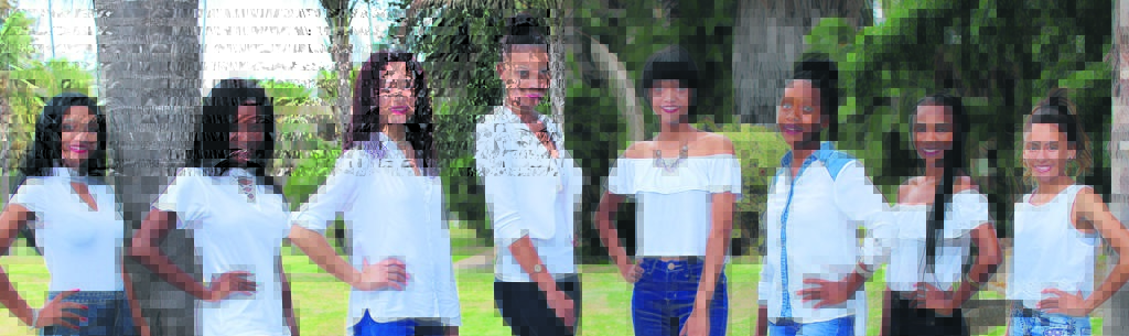 =Hier is John Walton se Mej. Alumni finaliste (van links) Naomi Potgieter, Benathi Douse, Biance Whitebooi, Stephanie Marais, Chante George, Linesha Hendricks, Tanya Smith en Linshe Peters. Foto:VERSKAF