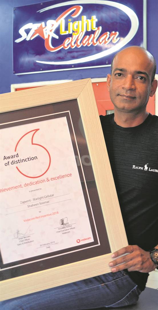 That is how the owner of Starlight Cellular in Kariega, Shaheen Soomar, referred to his most recent accomplishment, receiving the Vodacom Business Partner Award of Distinction in Gauteng.