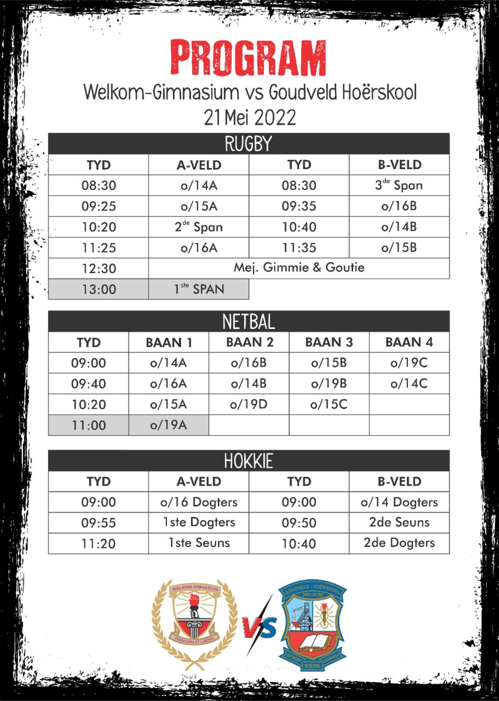 In dié tyd klop harte warm vir hul onderskeie skole, herleef herinneringe en is die opgewondenheid en afwagting in die lug tasbaar.