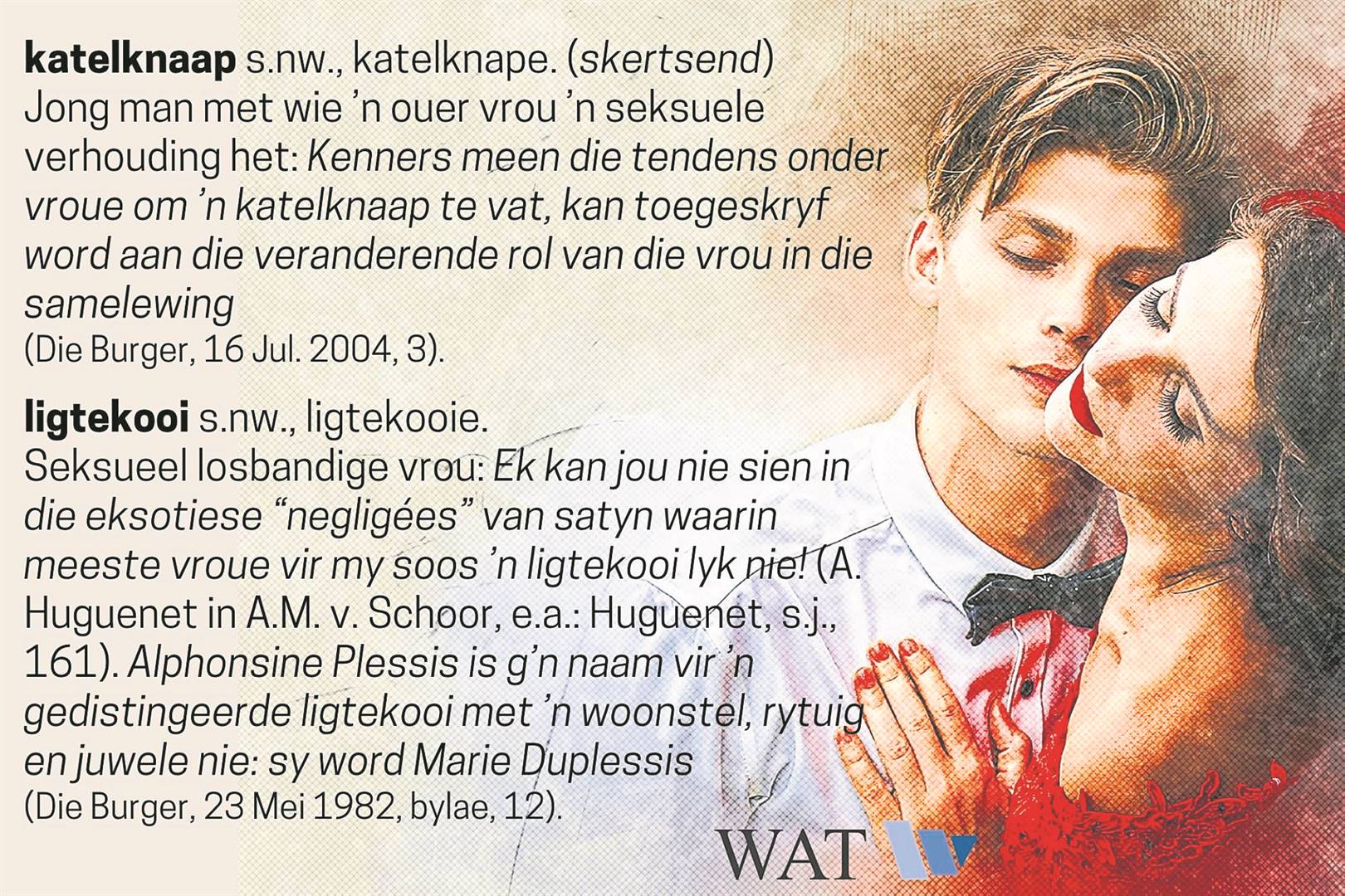 Die Buro van die Woordeboek van die Afrikaanse Taal (WAT) stel elke week ’n beskrywing van ongewone Afrikaanse woorde of idiomatiese uitdrukkings bekend. Die woordeboek weerspieël Afrikaans in sy wydste omvang. Besoek wat.co.za vir meer inligting. Fotosamestelling: WAT