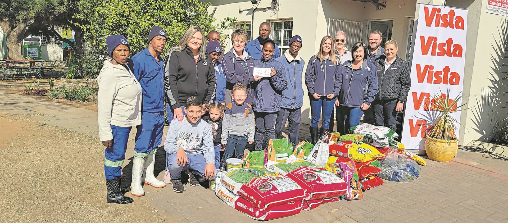 To celebrate Mandela Day on Monday (18/07), Vista and four of its advertisers – Flamingo Spar, Empire Spar, Sylvania Spar and Hero Feeds – spent 67 minutes for Mandela at the Welkom SPCA. The SPCA staff were treated to hotdogs and cooldrinks, and a large donation of food and money was handed over. From the left are, front: Miguél Farinha (12), Ella Farinha (2) and Carlo Farinha (4)