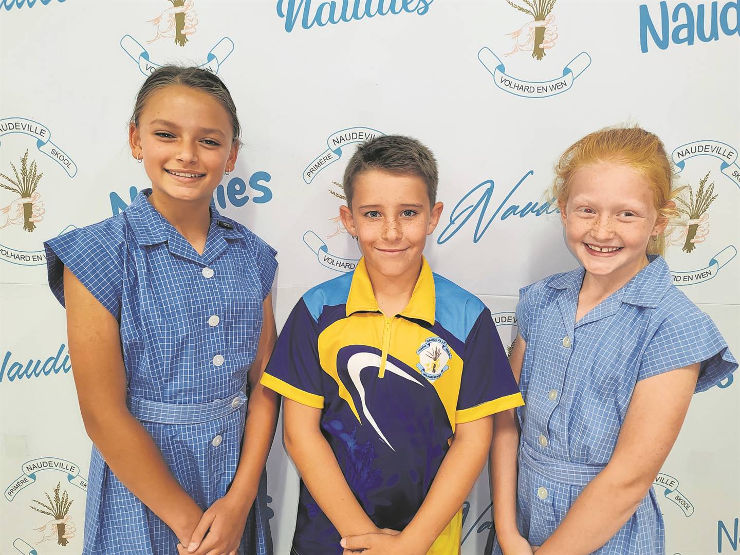 Drie tennisspelers van die Naudeville Primêre Skool in Welkom is in die Lejweleputswa-tennisspan ingesluit. Van links is Mar-Lèzé van der Merwe, Johandré du Plessis en Aneri Hoogendyk. Foto: Verskaf