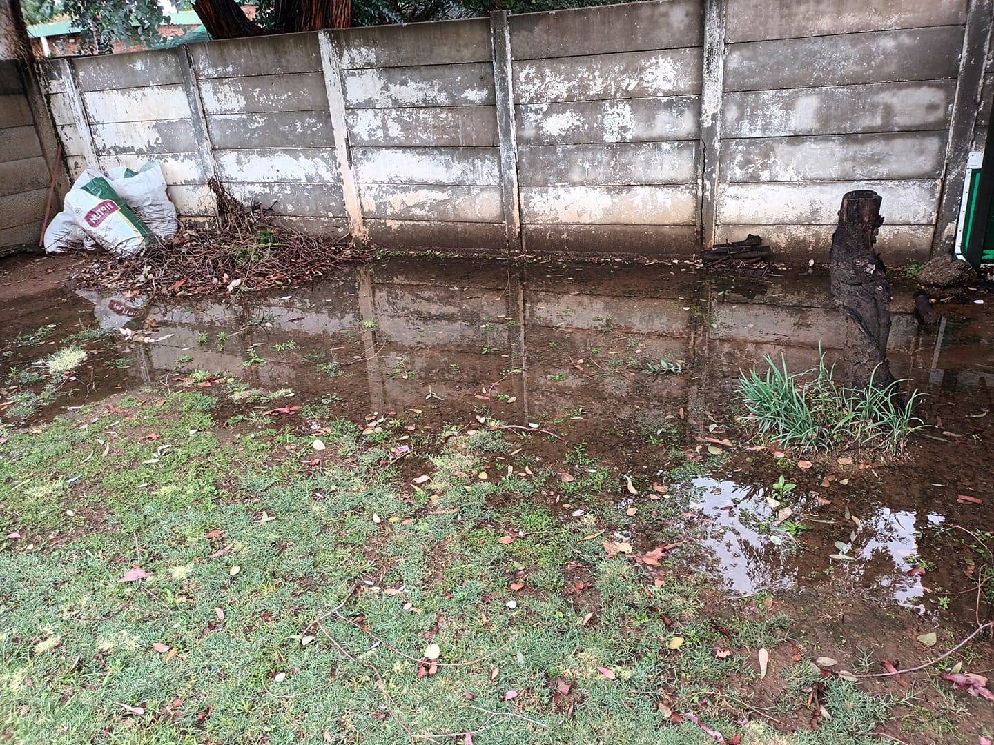 Bets Weideman van Riebeesckstad het 46 mm reën gemeet. Sy sê die water wil nie meer weg nie. Foto’s: Facebook