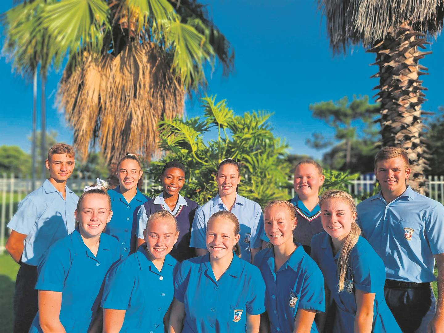 Elf atlete van Goudveld-Hoërskool was ingesluit in die Vrystaat-atletiekspan wat aan die Suid-Afrikaanse kampioenskappe in Germiston deelgeneem het. Van links, voor: Sonnica van den Berg (gewigstoot en diskus), Rihane Liebenberg (hamergooi), Ane Lemmer (diskus en gewigstoot), Michelle van der Westhuizen (driesprong) en Carli Taljaard (diskus en gewigstoot)