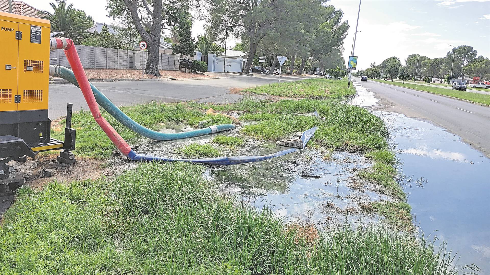 This defunct sewage pump in Stateway, and an adjacent freshwater pipeline that has developed a major burst, will be attended to urgently. So says Thokozile Nkuna, spokesperson for the Matjhabeng Municipality. “The Matjhabeng Local Municipality is currently facing operational challenges that have made it difficult to immediately address some service delivery issues. Assistance has been sought externally in an effort to speedily reme­dy the situation. The pump (photo) will be attended to as a matter of urgency. The municipality remains committed to making every effort to ensure that services are delivered to the community.” This problem is weeks old, and has consequently led to large quantities of sewage water and fresh drinking water gushing down Stateway.Photo: Marti Will
