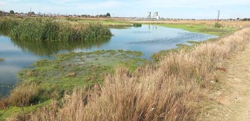 “Raw sewerage, recognised by the presence of blue-green algae (Cyanobacteria) due to faecal sediment, is accumulating and flowing under the R30 road into a vaporising dam,” says Nel.