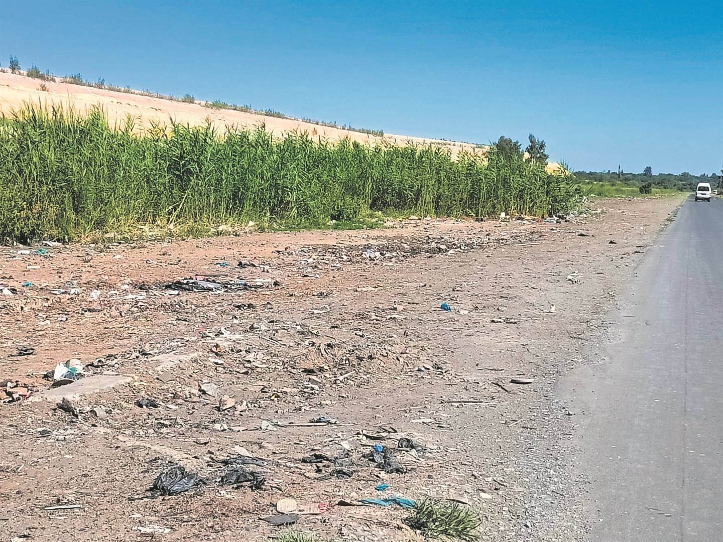 The illegal dumping site between Meloding and Virginia stretches over 1,1 km and ends metres from the Shell Garage circle at the entrance to Virginia’s central business district. The residential area starts just beyond this circle, on the left-hand side. The problem emanates from the municipal waylay refuse station being inoperable and inaccessible to most residents.