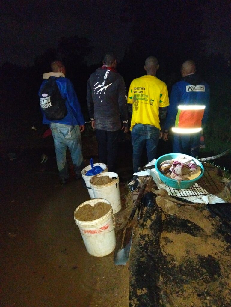 A team of police members, along with combat, proactive operators, drone pilots and private security companies executed disruptive illicit mining policing actions in Old St Helena Phoenix 500, Old Steyn 2 Mine, Old Western Holdings 05 Mine, African Rainbow Mineral.