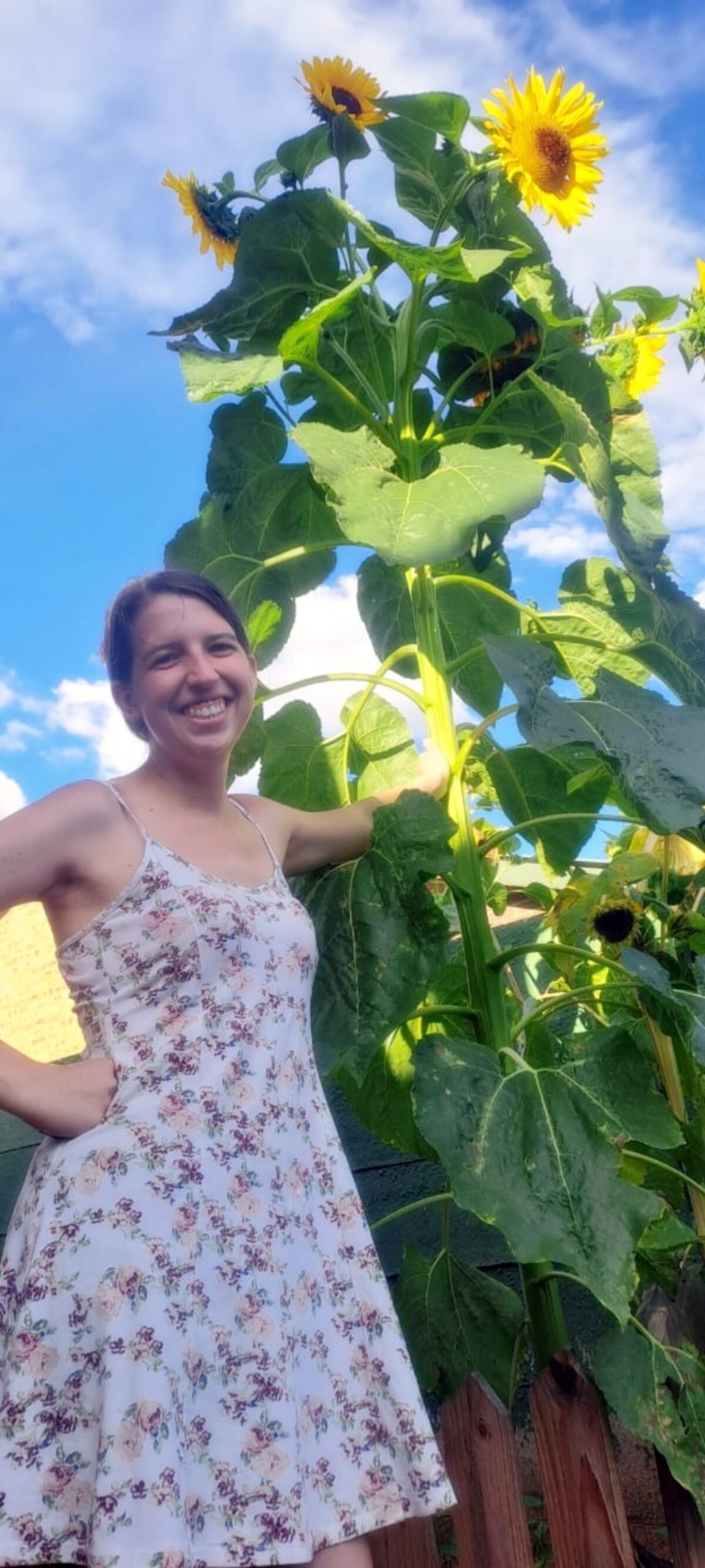 ‘n Jong vrou van Virginia het bewys dat sy ‘n goeie hand in die tuin het nadat haar reuse-sonneblom almal verstom het.