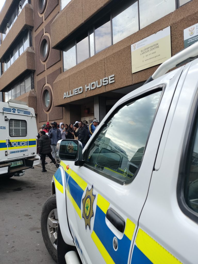 Lede van die provinsiale polisie se eenheid van georganiseerde misdaad, misdaadintelligensie, die takstiese reaksiespan, openbare orde en die berede eenheid het Donderdag om 09:30 op die kantoor op die hoek van Wesburger en Charlotte Maxekestraat toegeslaan.