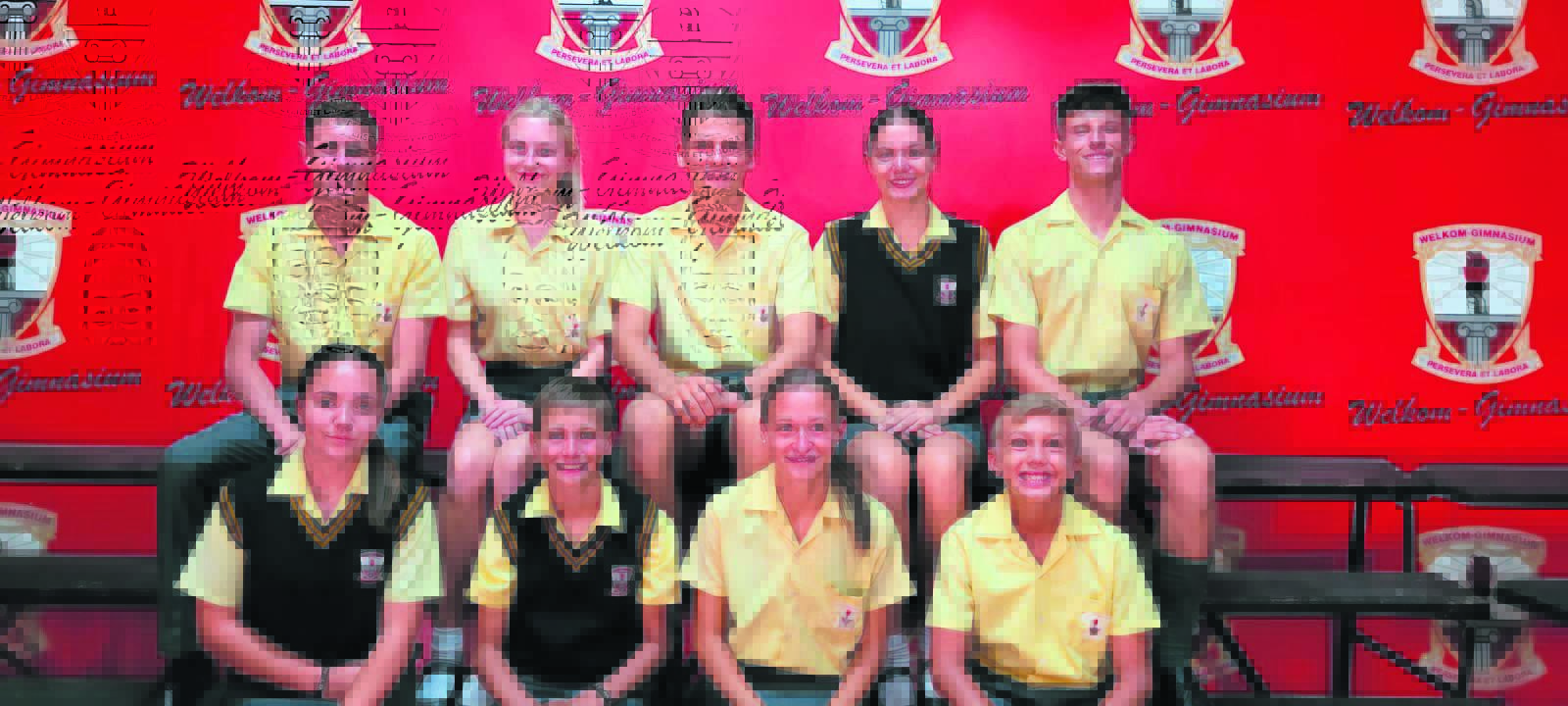 Nege tennisspelers van Welkom-Gimnasium is in Lejweleputswa-spanne vir 2025 ingesluit. Van links is, voor: Cayla Olivier (o.15), Dian Erasmus (o.15), Mieke Erasmus (o.17) en Carl van Vuuren (o.15)