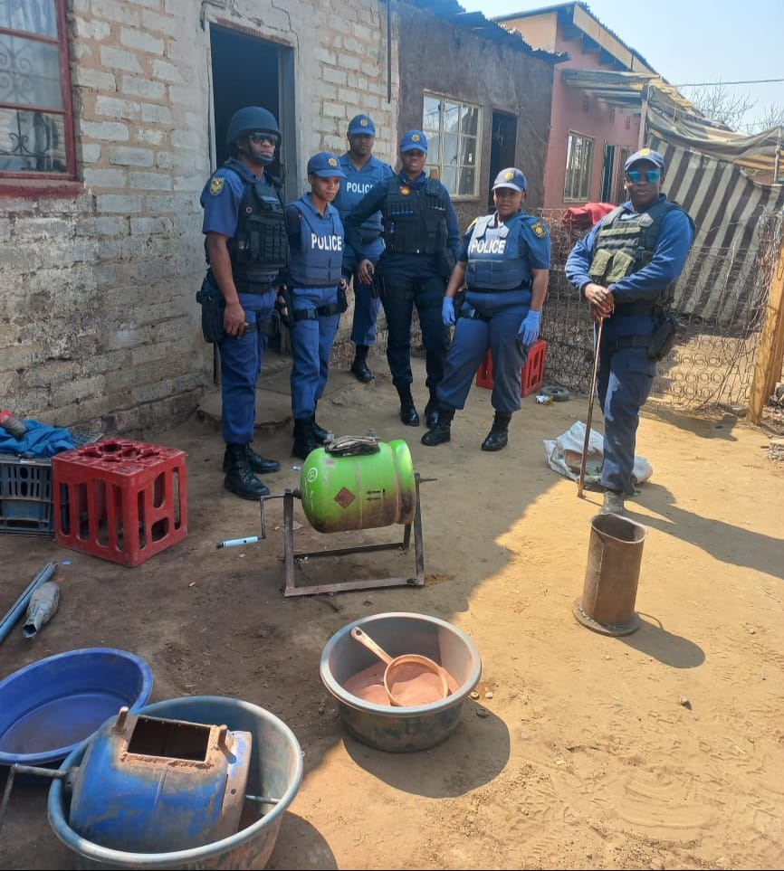 Equipment seized included two heating pans, one self-made phenduka (hand-driven cylinder), two self-made phenduka stands, a pickaxe, oxygen cylinders, and acetylene cylinders. Gold worth an estimated R15 000 was seized.