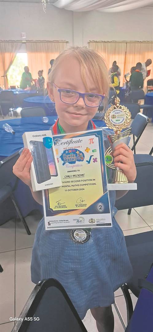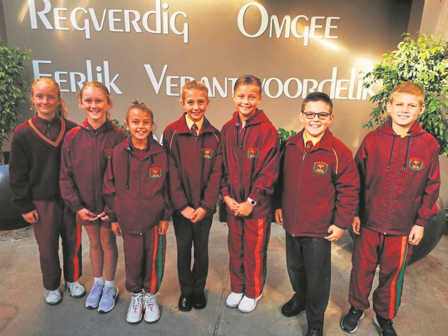 Sewe leerlinge aan die Welkom-Volkskool het topplekke in die Cluster Mental Maths-kompetisie behaal. Van links is Christilli Cronjé (eerste, gr. 4), Naudé Willemse (derde, gr. 4), Kara Taute (eerste, gr. 5), Mieke Strydom (derde, gr. 5), Leila Erasmus (derde, gr. 5), Ezelle Ehlers (eerste, gr. 6) en JP Botha (eerste, gr. 6).Foto’s: Verskaf