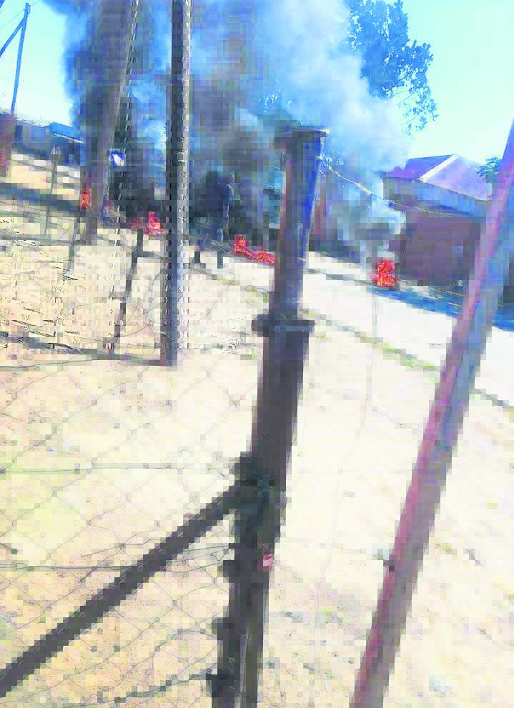 Angry residents protesting the lingering poor service delivery used burning tyres, tree branches and rocks to barricade the entrance of Phomolong. Police vehicles were also damaged during the protest.