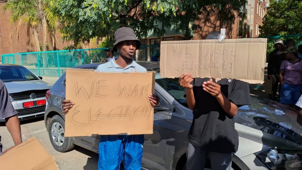After yet another electricity cut-off to the complex, angry residents picketed outside the municipal buildings in Stateway demanding that their services be reinstated on Wednesday, 19 March.