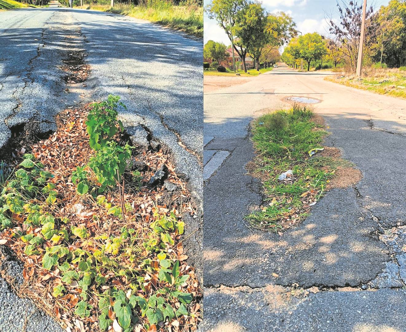 Toestande vir inwoners van die 1,5 km-lange Van der Stellaan in Virginia versleg by die dag. Dié twee oases, aanduidend van die erge agteruitgang van die pad, is net 15 m uitmekaar in dié straat.