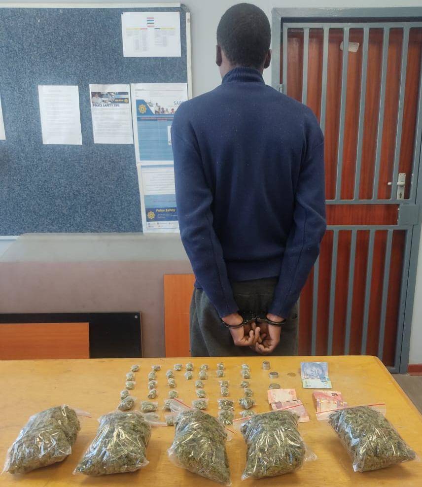 Members of Welkom Public Order Policing arrested a suspected drug dealer after receiving information that learners at a high school in Welkom had been caught with dagga.