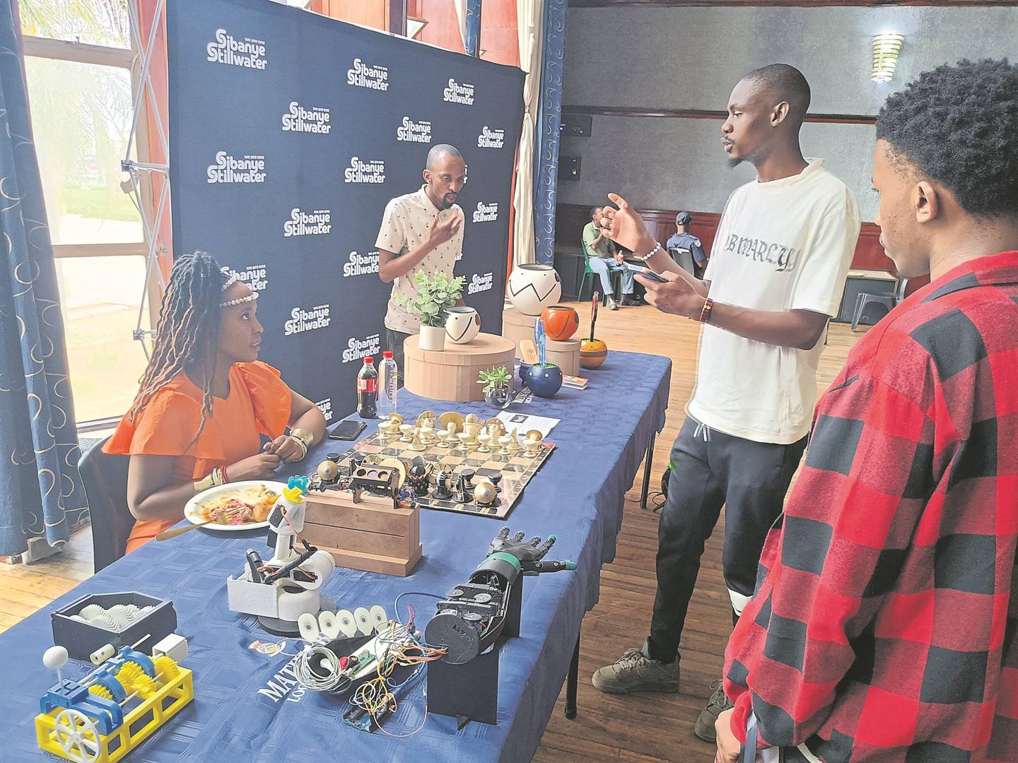 A succesful Pitch and Market Day was presented on 6 December by Sibanye Stilwater at the Ferdi Meyer Hall in Welkom. The exhibition showcased the impact of the Beatrix Alternative Economy Project, where local entrepreneurs have been empowered through digital and non-digital programmes. These initiatives have helped participants turn their ideas into thriving businesses by expanding tech-driven innovations and traditional business models. Nthati Machesa created the African chess set, and Mlamuleli Moyo created the African bluetooth speakers. From the left are Nthati Machesa, Mlamuleli Moyo, Tebello Mokoena and Bandile Motsoeneng. Photo: Marti Will